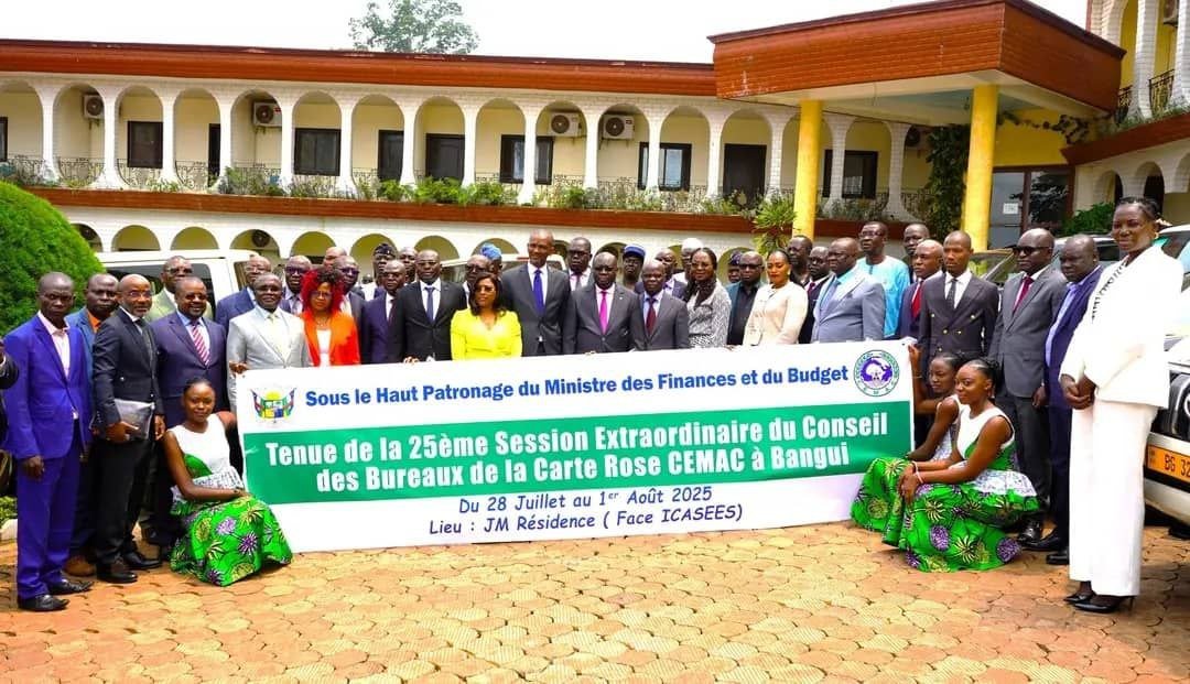 Bangui, 29 juillet 2025 – (Eclipse d’Afrique) : Le lundi 28 juillet 2025, la salle de conférences de l’hôtel Résidence JM a accueilli la cérémonie inaugurale de la 25e session extraordinaire du Conseil des Bureaux de la Carte Rose CEMAC. Placée sous l’égide de M. Yannis Stéphane Koyangbanda, représentant le ministre des Finances et du Budget, empêché, cette rencontre a réuni des acteurs clés autour d’un objectif commun : améliorer le système régional d’assurance « Responsabilité civile automobile ».