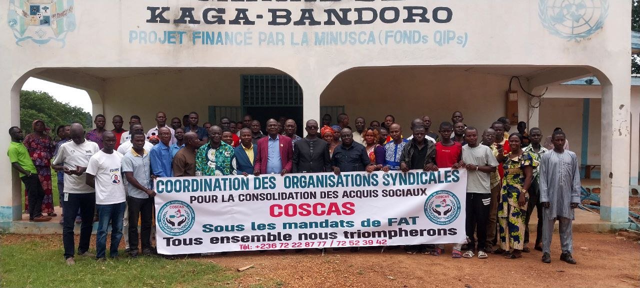 Dans le cadre de la sensibilisation en faveur de la consolidation des acquis sociaux chèrement retrouvés grâce à la vision politique du Chef de l’Etat, la COSCAS qui est une plateforme regroupant les centrales syndicales avec pour but de sensibiliser les travailleurs centrafricains sur les acquis sociaux obtenus grâce au Président Touadera est en mission de travail dans la Nana-Gribizi.