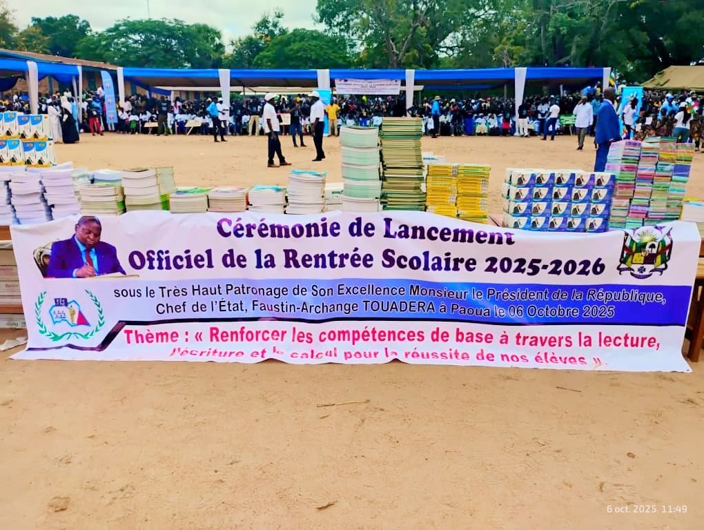 Bangui 07 octobre 2025 – (Éclipse d’Afrique) : Le Président de la République, Pr Faustin Archange Touadéra a lancé le lundi 06 octobre la rentrée scolaire 2025-2026 à Paoua dans la préfecture de la Lim-Pendé en distribuant des kits scolaires aux élèves de plusieurs établissements.