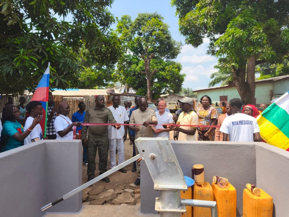 Bangui, 5 novembre 2025 – (Eclipse d’Afrique) : La population du quartier Sara-Kaba Union dans le 3ᵉ arrondissement de Bangui a reçu ce mercredi 5 novembre un nouveau forage offert par le Président de la République, le Professeur Faustin-Archange Touadéra. Ce projet a été réalisé avec le soutien des partenaires russes en Centrafrique. La cérémonie d’inauguration s’est tenue en présence du Directeur de Cabinet du ministère de l’Énergie, de l’Eau et de l’Hydraulique, M. Gérard Zoungéré, représentant le ministre, ainsi que des partenaires russes et de nombreux membres de la population locale venus exprimer leur gratitude.